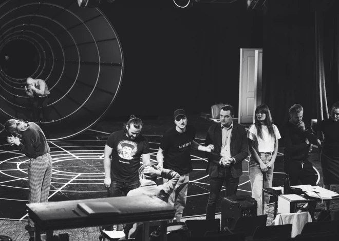 Dailes teātra izrādes ""Krietnā puiša rituāla nokaušana" mēģinājums