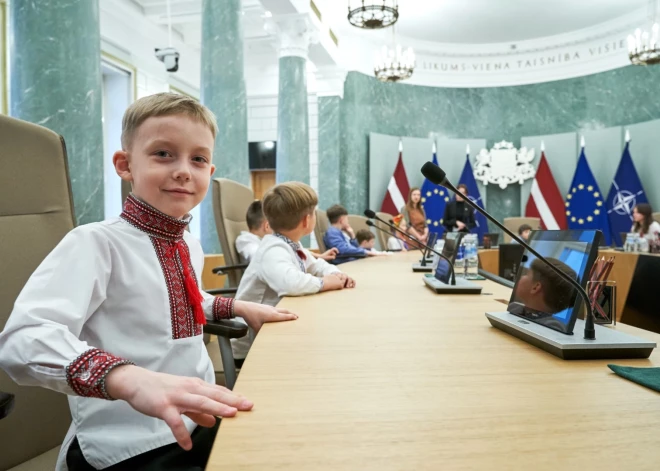FOTO: ukraiņu bērni ieņem Latvijas ministru krēslus