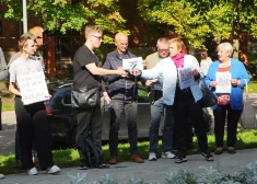Pie Iekšlietu ministrijas pulcējušies tie, kurus neapmierina Ministru kabineta lēmums aicināt Saeimu dot papildus laiku Krievijas pilsoņiem nokārtot valsts valodas ...