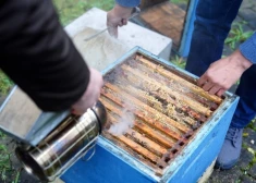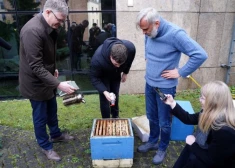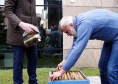 Rīgas rātsnama terasē biškopja vadībā tiek ieziemotas Rīgas rātsnama bites.