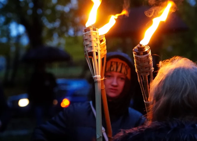 FOTO: ar lāpu gājienu un atceres pasākumu Sudrabkalniņā godina brīvības cīnītājus