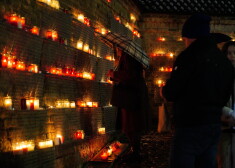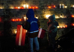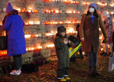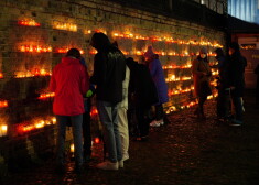 11. novembrī uz Rīgas pils mūra aizdegtās svecītes pārtop Ukrainas ierakumu svecēs