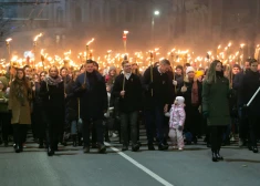 Atzīmējot 18.novembri, ievērojams skaits cilvēku devies lāpu gājienā Rīgā.