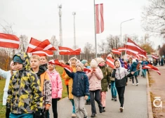 FOTO: Carnikavā skolēni dodas patriotiskā karogu gājienā