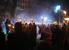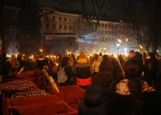Vairāki tūkstoši cilvēku sestdienas vakarā Rīga centrā devās tradicionālajā lāpu gājienā no Kārļa Ulmaņa pieminekļa.