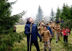 Rīgas mērs Vilnis Ķirsis ar jaunsargiem izraugās egles "Rīgas mežu" Gaujas mežniecības teritorijā pie Siguldas novada Jūdažiem