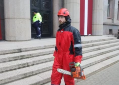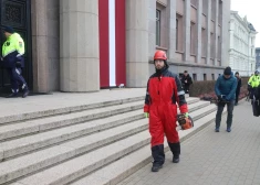 Pie valdības ēkas šodien, ap plkst 13.00 sanāca apmēram 50 cilvēki.
