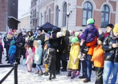 Daudzbērnu ģimenes un Rinkēvičs iededz svētku egli pie Rīgas pils