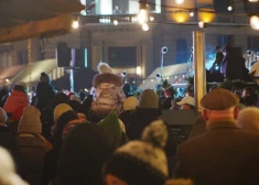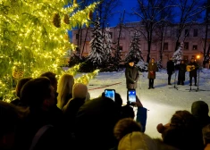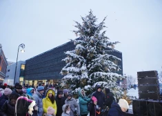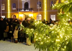 Rātslaukumā tiek iedegta Ziemassvētku egle