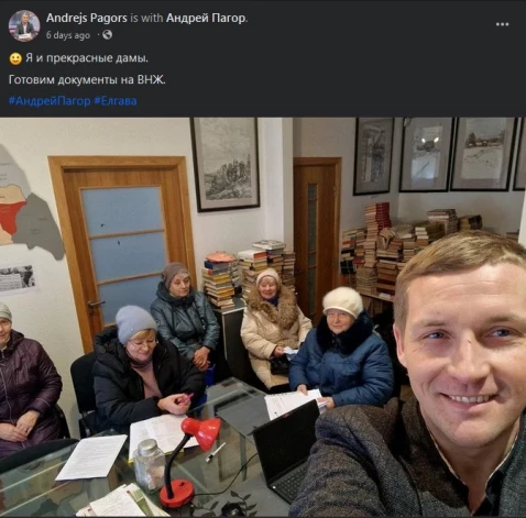 Portālā “Facebook”, kur vēl pērn Pagors demonstratīvi sveica visus Krievijas armijas desantnieku svētkos, viņš raksta: “Es un brīnišķīgās dāmas. Gatavojam dokumentus PUA iegūšanai.”