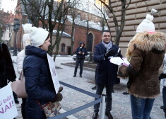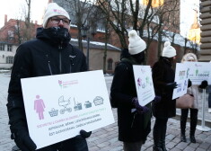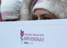 Piketā pie Saeimas pieprasa 8. martu noteikt par brīvdienu. FOTO