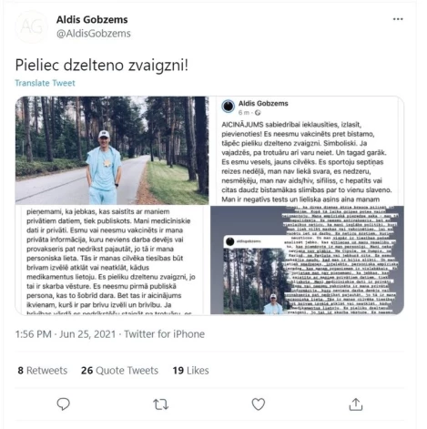 Covid-19 pandēmijas laikā 2021. gada jūnijā Gobzems izpelnījās plašu sašutumu, aicinot cilvēkus, kas nevēlas vakcinēties, pielikt pie krūtīm dzeltenu sešstaru zvaigzni. Šādi viņš pauda uzskatu, ka ar valsts ievestiem regulējumiem antivakseri ir nostādīti tādā pašā situācijā kā ebreji nacistu kundzības apstākļos.