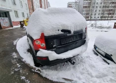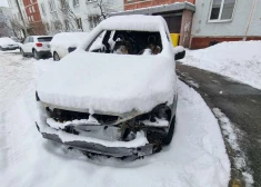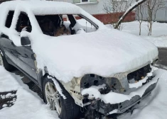 Tā izskats liecina, ka auto dedzis stipri, taču pirms kāda laika - izdedzinātās spēkrata atliekas klāj balta, bieza sniega sega.