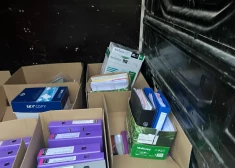 Attēli ar aizturētajā busā atrasto daļu Stradiņa slimnīcas projekta dokumentāciju, kuru SIA "Velve" pārstāvis nelikumīgi mēģināja izvest no objekta teritorijas ...