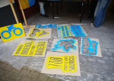 Ukrainas atbalstītāji apmeklē plakātu darbnīcu "Kopā līdz uzvarai!"