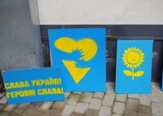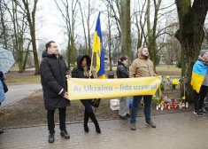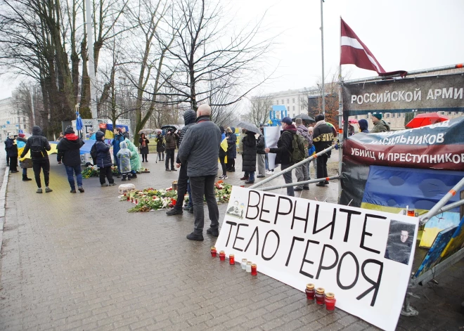 Ukrainas atbalstītāji Rīgā pulcējas pie Ukrainas vēstniecības