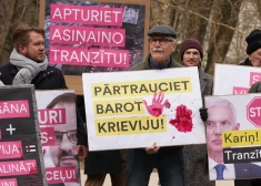 "Stop asiņainajam tranzītam". Piketā pieprasa apturēt mangāna rūdas tranzītu uz Krieviju