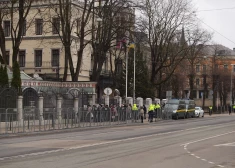 Pretī agresorvalsts vēstniecībai notiek pikets, kura dalībnieki ir ieradušies ar Ukrainas karogiem. Viens no piketa dalībniekiem bija ieradies ar spaini, kurā bija sarkans šķidrums, kas tika izliets pie vietas, kur robežsardze veic dokumentu pārbaudi, Jura Alunāna un Kalpaka bulvāra krustojumā.