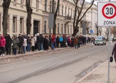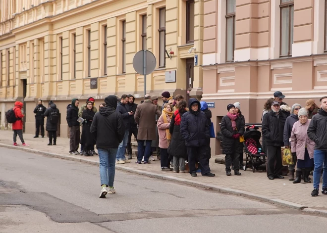 FOTO, VIDEO: cilvēki Rīgā stāv iespaidīgās rindās, lai nobalsotu tā sauktajās Krievijas prezidenta "vēlēšanās"