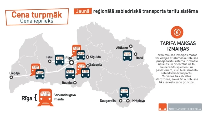 Pēdējās izmaiņas tarifu izmaiņās reģionālajos sabiedriskā transporta maršrutos datējamas ar 2020. gada 15. janvāri, kad visos reģionālās nozīmes pārvadājumos palielināta braukšanas cena neatkarīgi no attāluma par 0,10 EUR.