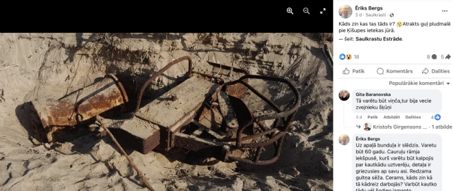 Neviens nezina, kas tas ir: ļaudis soctīklos diskutē par Saulkrastu pludmalē uzietu dzelzs "uzparikti"