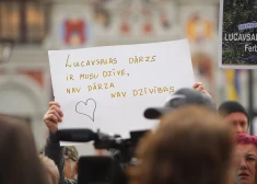 Rīdzinieki pie domes piketē par zaļas Lucavsalas saglabāšanu