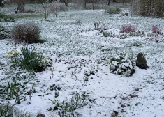 "Kādi Ziemassvētki? Normāls aprīlis," par apsnigušajām narcisēm vēsta Inese.