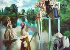 Izstādi ievada šī brīža paradoksālo noskaņu iedvesmota glezna “Laika sajūta ar skeletiem” (2024) - prieks par dabas atmodu mūsu apziņā mijas ar kara agresijas ziņu ēnām, kam līdzās tomēr aizvien pastāv cerība, mīlestība un radošā gara spēks. Izstādes kuratore Inese Baranovska stāsta: