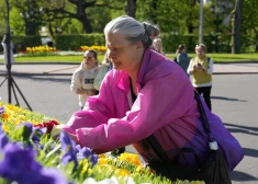 Latvijas Republikas Neatkarības atjaunošanas 34.gadadienai veltītajās svinībās noliek ziedus pie Brīvības pieminekļa, kur ikviens var iesaistīties ikgadējā objekta "Ziedu Latvija" ...