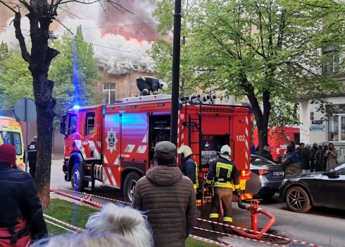 Spēcīga ugunsgrēka dzēšana Laboratorijas ielā Rīgā