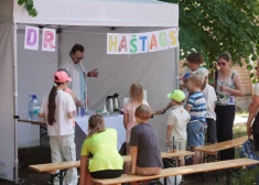 FOTO, VIDEO: Bērnu slimnīcā sportiskā gaisotnē aizvadīti Dārza svētki
