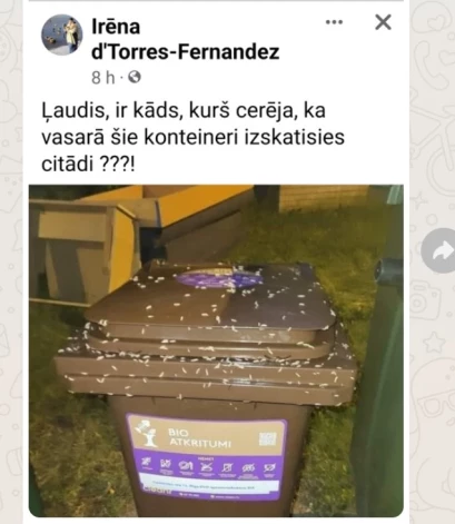 Apkaimju iedzīvotāju grupās klīst ne visai patīkams foto ar bioloģisko atkritumu konteineri, kas atdzīvojies - tajā savairojušies tārpi.