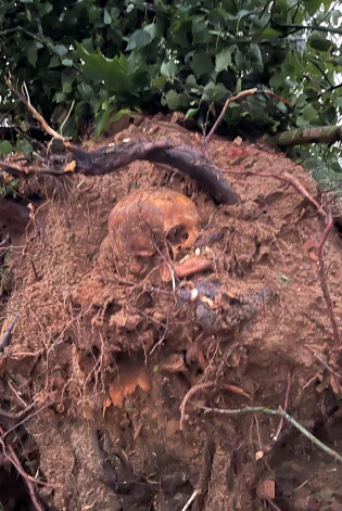 Bauskas pilskalnā, zem spēcīgā vējā izgāztām koka saknēm atrasti divi cilvēku galvaskausi un kauli.