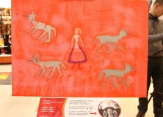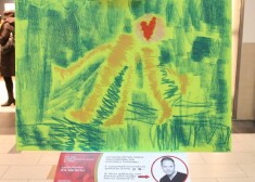 Bērni radījuši gleznas, iedvesmojoties no mūziķu dziesmām. FOTO