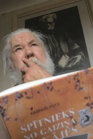 Tā ir mana trešā grāmata un tapa diezgan ilgi. Pabeidzu savu Pūcesbērnu (“Pūcesbērna patiesie piedzīvojumi Padomijā”, kas nupat piedzīvojusi atkārtotu izdevumu – D. E.) un konstatēju, ka man no tēva palicis vesels blāķis materiālu – dažnedažādi uzmetumi un idejas. Jau agrāk biju mazliet ieskatījies viņa darbos, jo drīz pēc tēva aiziešanas man piezvanīja rakstnieks un publicists Andris Jakubāns, toreizējais avīzes Literatūra un Māksla redaktors, un teica – klausies, Kaspar, tavs tēvs man stāstīja, ka viņam esot kaut kas par kino. Atbildēju, ka ne vella nezinu, jo viņš jau tikai sēdēja un rakstīja. Apsolīju, ka paskatīšos, un atradu vienu čupiņu ar aprakstītām lapiņām. Sāku pētīt un analizēt, ko tēvs savā rokrakstā tur sarakstījis, un konstatēju, ka tas tiešām ir par ķinīti – par kino kā tādu. Rezultātā iznāca tīri normāli lasāms gabals, kas tika publicēts Literatūras un Mākslas beidzamajā lapā ar trīspadsmit turpinājumiem. Toreizējais kino prātnieks, zinātnieks Ģirts Dzenītis manam darbam deva nosaukumu Kino jaunība. Tas bija vēl pirms manām teātra anekdotēm, 80. gados. Materiāls man bija, fotomateriāls arī, un tad pienāca tas brīdis, kad kļuva pieejami slepenie arhīvi. Kurzemes prospekta lielajā arhīvā es dabūju sava tēva tā saukto krimināllietu. Sēdēju tur uz vietas un, rupji rēķinot, apmēram pusotra gada laikā to visu vairāk vai mazāk pārrakstīju. Beigās nejauši konstatēju – johaidī, šitā profesija, kas saistīta ar teātri, taču pazūd! Rakstnieks pēc sevis atstāj grāmatu, gleznotājs – gleznu, tēlnieks – skulptūru, komponists – operu vai simfoniju. Bet kas paliek pēc aktiera un režisora? Man bijušas sarunas ar jaunākiem cilvēkiem, un viņi pat nezina, kas ir Eduards Pāvuls! Kad atgādinu, ka viņš tēlojis tādā un tādā filmā, tad atskan – ak, tas? Tad nolēmu, ka pienācis laiks tēvam par viņa milzu darbu uzcelt literāru pieminekli.