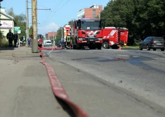 Notikuma vietā strādā 40 ugunsdzēsēji glābēji un astoņas autocisternas, divas autokāpnes, kā arī šlūteņu un putu specializētais automobilis.