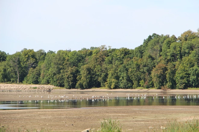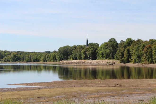 Sakarā ar ūdens līmeņa pazeminājumu līdz 27. septembrim, Koknesē vērojamas neierastas dabas ainavas Daugavas un Pērses krastos.