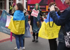 Rīgā gājienā pulcējas ukraiņu atbalstītāji ar karogiem, plakātiem un ziediem