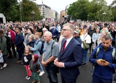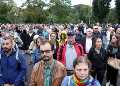 Organizētāji gājiena dalībniekus aicināja paust atbalstu Ukrainai, ierodoties ar saulespuķēm un Ukrainas simboliku.