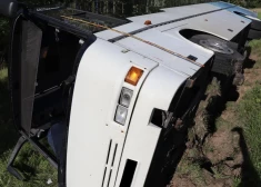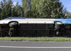 Igaunijas dienvidos sestdien tūristu autobuss no Latvijas sadūries ar vieglo automobili un apgāzies uz sāniem, ziņo laikraksts "Postimees", atsaucoties uz policijas sniegto informāciju.