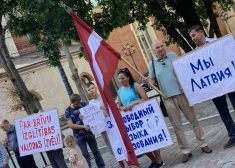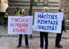 Latvijas Krievu mācībvalodas skolu atbalsta asociācijas (LAŠOR) rīkotais pikets pret mācību pārtraukšanu krievu valodā pirmsskolā un vispārējā izglītībā šorīt pie ...