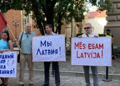 FOTO; VIDEO: daži cilvēki pie Saeimas piketē pret pāreju uz mācībām tikai latviešu valodā