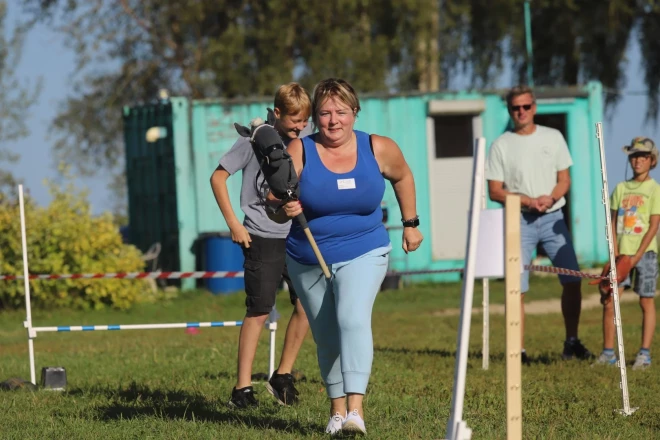 Te pulcējas vairāki desmiti cilvēku, no kuriem puse ir bērni – no pavisam maziem līdz pusaudžu vecumam. Tieši viņi tad arī ir sacensību galvenie dalībnieki, jo pieaugušie lēkāt pār barjerām ar rotaļu zirdziņu kājstarpē laikam tomēr mazliet kautrējas. Tiesa, sagaidot pasākuma naglu – ģimenes skrējienu, kas būtībā ir stafete, kurā piedalās viens bērns un viens pieaugušais, arī lielie krita azartā un skrēja pa trasi klupdami krizdami.