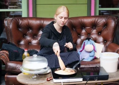 FOTO, VIDEO: ar pankūkām uz pannas, šķīvja un vēderā atklāj Marijas Luīzes Meļķes jaunāko grāmatu