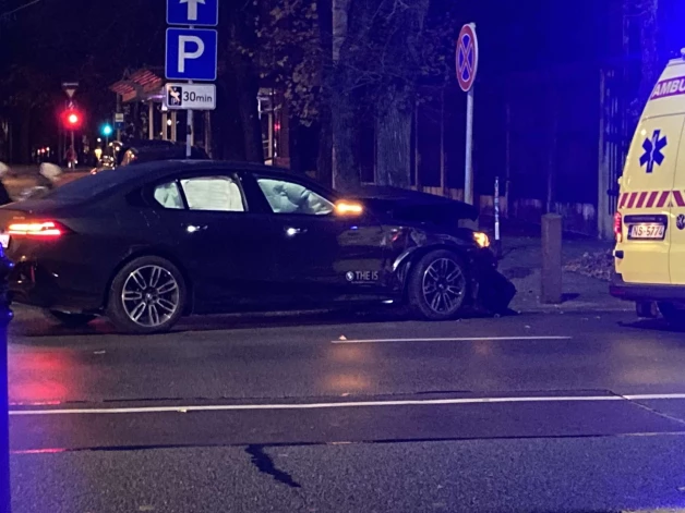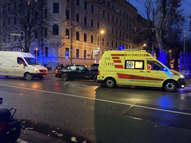 FOTO, VIDEO: avārija Rīgas centrā: BMW auto pēc sadursmes bojāts