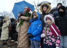 Ziedu nolikšana pie Brīvības pieminekļa