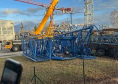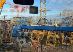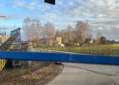 Mārupē dažus metrus no skolēnu autobusa uz ceļa nogāžas milzīgs celtnis
