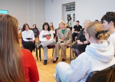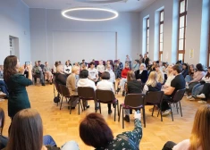 izglītības un zinātnes ministre Anda Čakša kopā ar padomnieci Edīti Kanaviņu un Izglītības un zinātnes ministrijas Izglītības departamenta direktora vietnieku ...