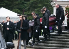 FOTO: Jānis Naglis, Jūlijs Krūmiņš, Raimonds Kisiels, ģimene, draugi un kolēģi mūžībā pavada traģiski mirušo autosporta entuziastu Edgaru Maišeli