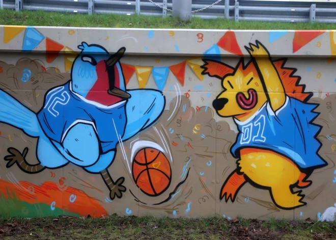 FOTO: uz Brasas tilta atbalsta sienām atklāj Latvijā garāko murāli